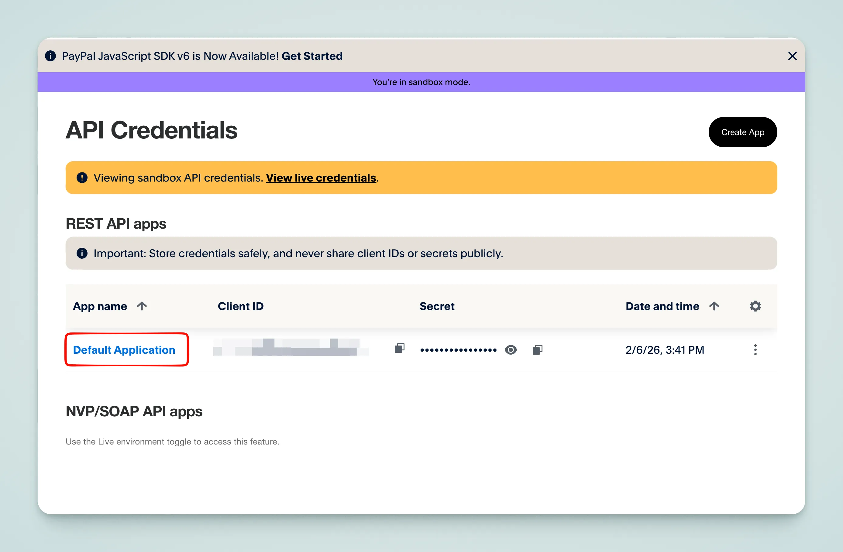 Go to PayPal Developer and sign up, then log in to the Dashboard.